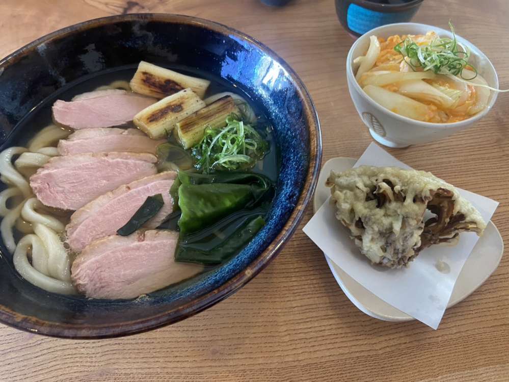 鴨葱うどんととり天ぶっかけうどん、まいたけのてんぶら、ミニ親子丼を美味しく頂きました^ ^