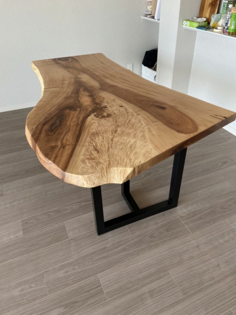茨木市のお客様宅へ今回も変形の栃一枚板をお届けしました^ ^