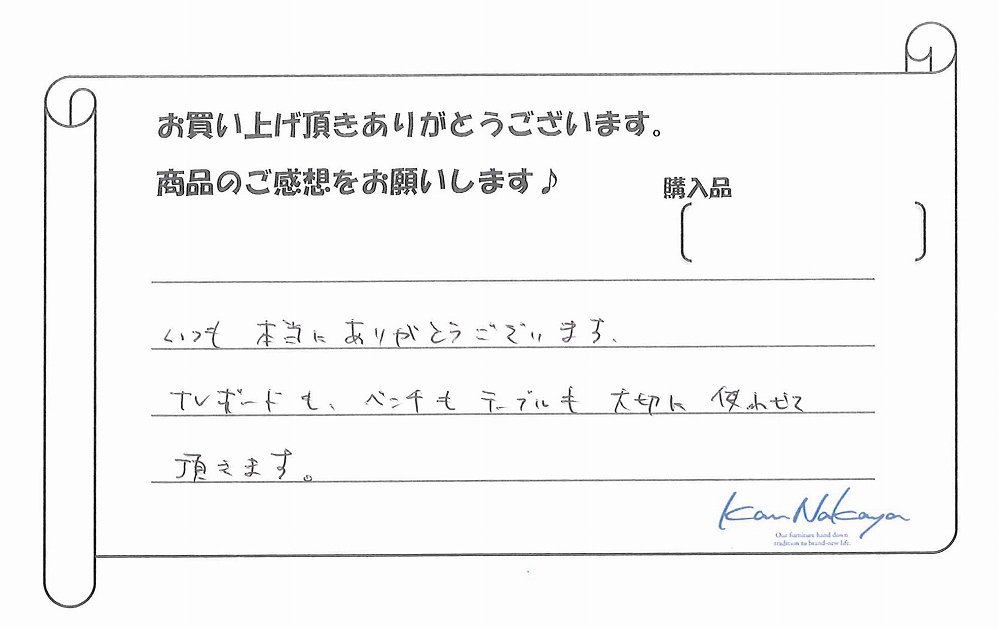 TVボードもベンチもテーブルも大切に使わせて頂きます。』