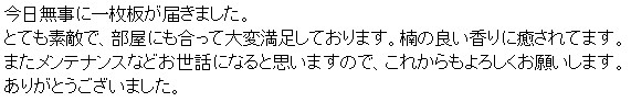 お写真を拝見させて頂きとても良い雰囲気で私どもも大変嬉しく思います。
