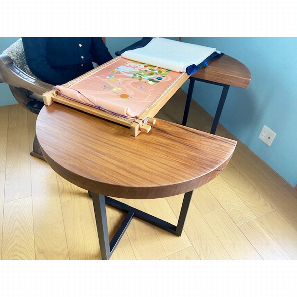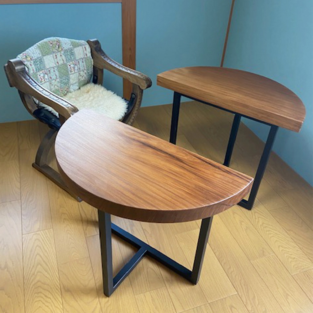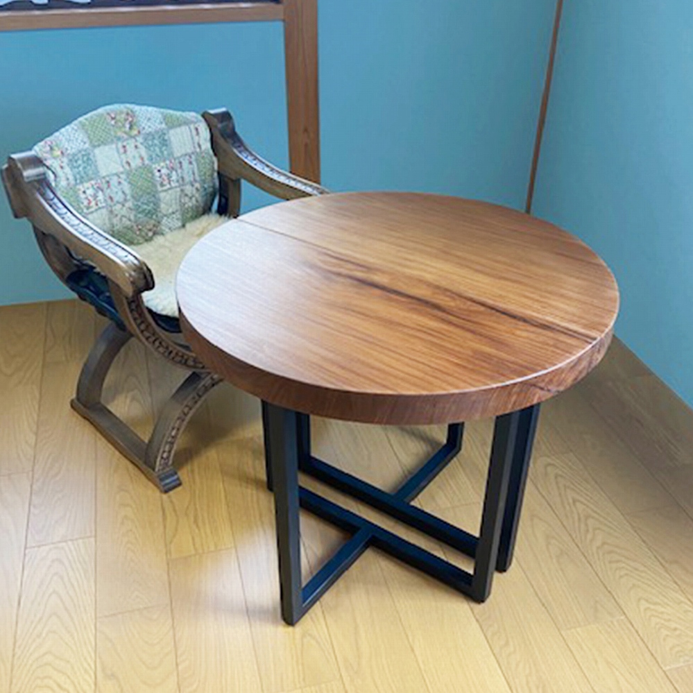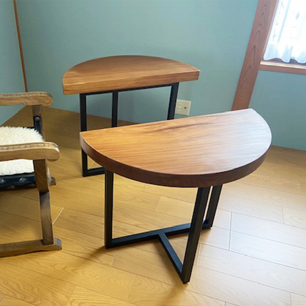 贅沢に一枚板の円卓を2分割にカットしたオーダーメイドのアサメラの一枚板をお届けさせていただきました。