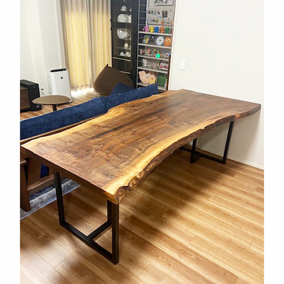 格好良いが一番似合うクラロウォールナットの一枚板をお届けさせていただきました。クラロウォールナットならではの杢目は重々しくも目が離せない不思議な感覚を覚えます。とても気に入って頂けて嬉しく思います。ありがとうございました。