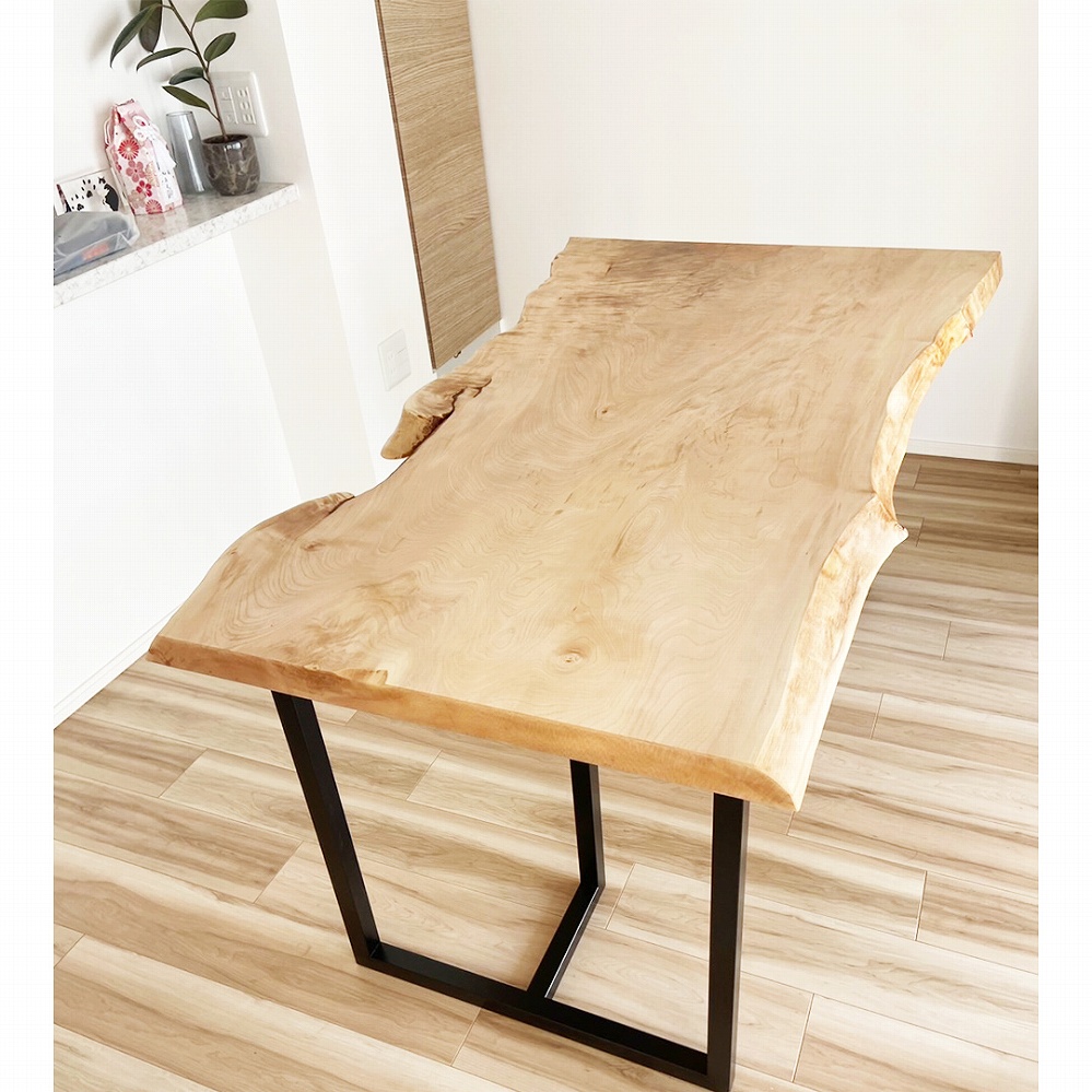 色白で可愛い栃(トチ)の一枚板をお届けさせていただきました。見た目もサイズ感も納得のいくものが見つかり良かったです。変形部分もかわいらしくずっと撫でてしまいますね。明るいお部屋がより生き生きとしたスペースになりました。