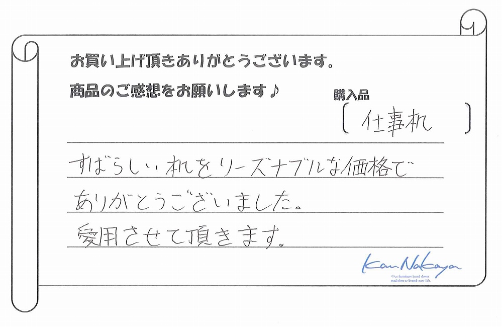 『すばらしい机をリーズナブルな価格でありがとうございました。