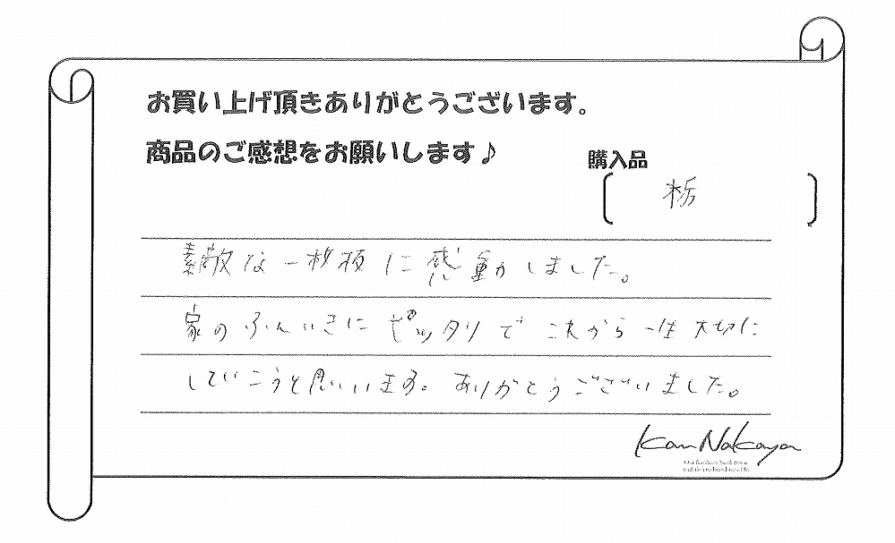 家のふんいきにピッタリでこれから一生大切にしていこうと思います。ありがとうございました。』