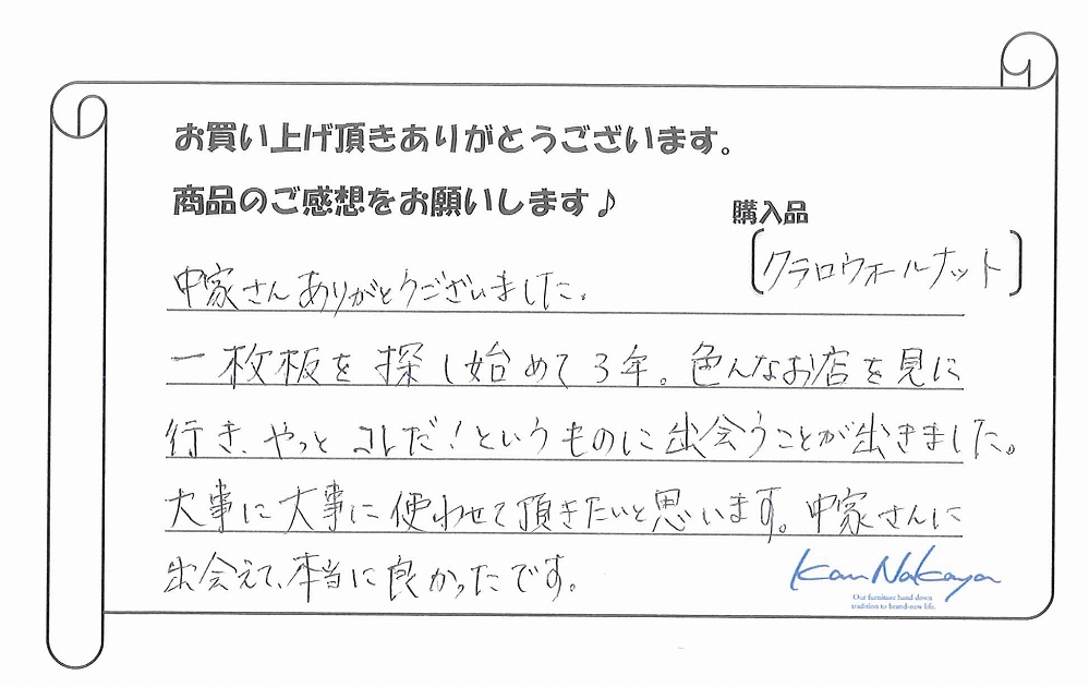 大事に大事に使わせて頂きたいと思います。中家さんに出会えて本当に良かったです。』