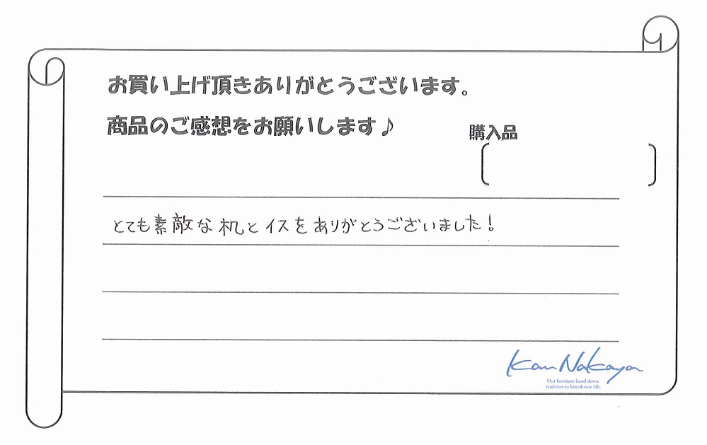 『とても素敵な机とイスをありがとうございました!』