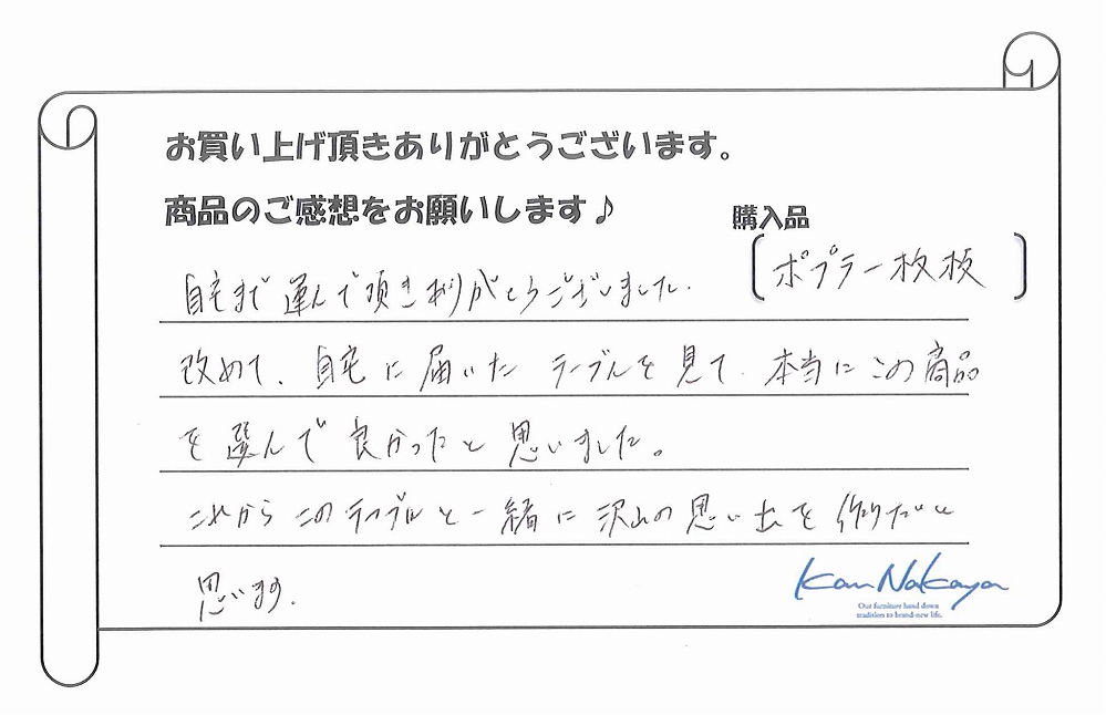 これからこのテーブルと一緒に沢山の思い出を作りたいと思います。』
