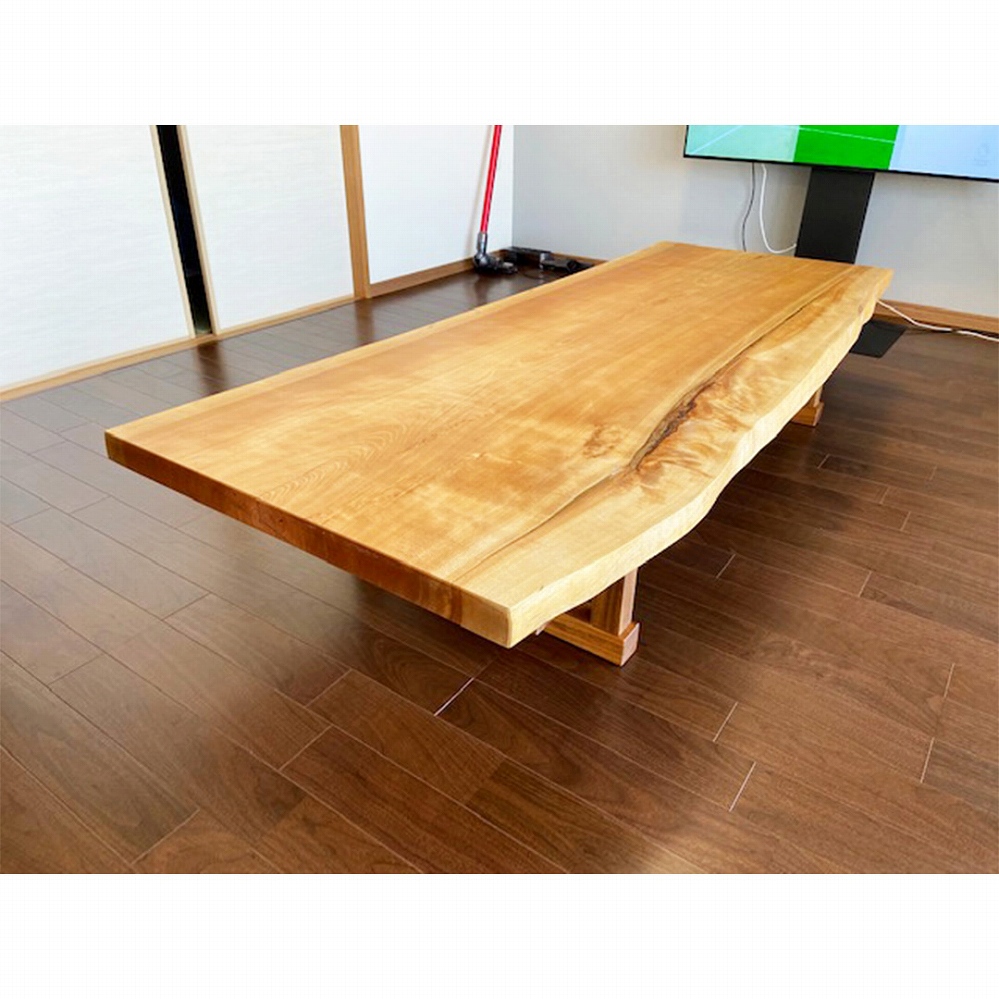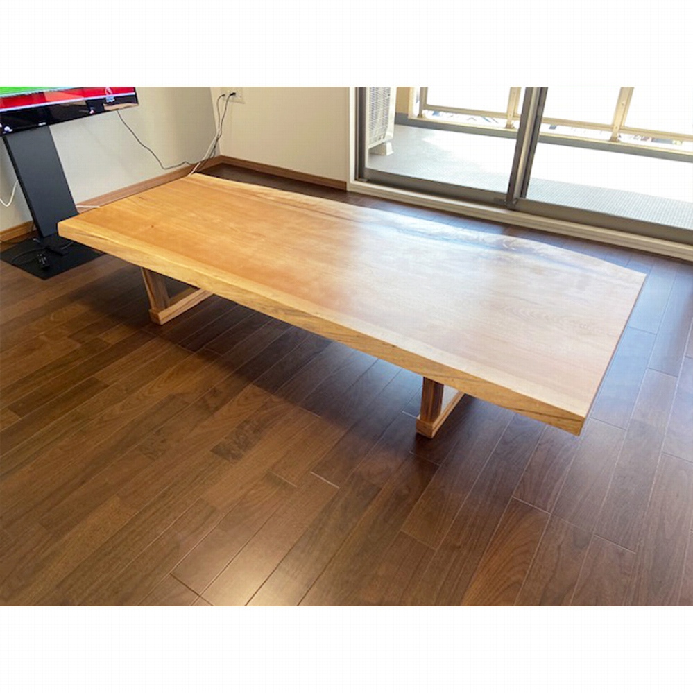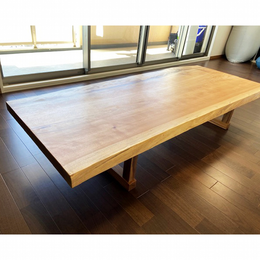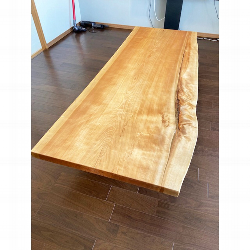 美しい木目と色合いが素敵な水目(ミズメ)の一枚板をお届けさせていただきました。水目の色合いでお部屋もパッと明るくなりますね。使っていくほどに愛着が湧いてきますよ。