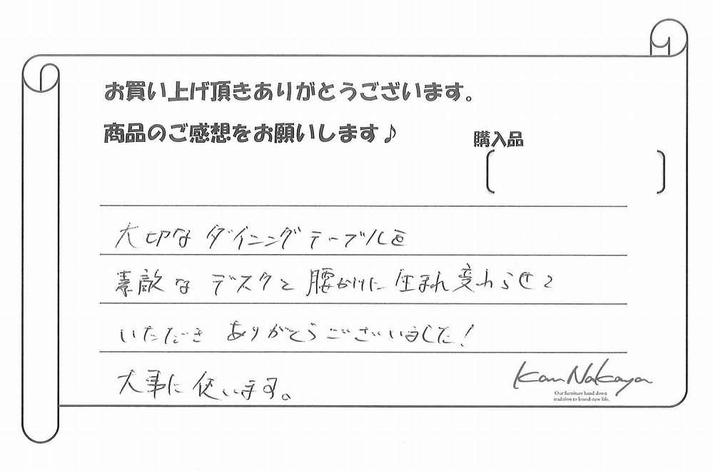 『大切なダイニングテーブルを素敵なデスクと腰かけに生まれ変わらせていただきありがとうございました!