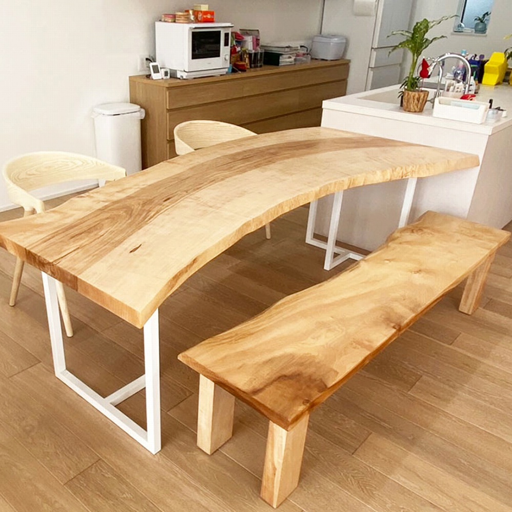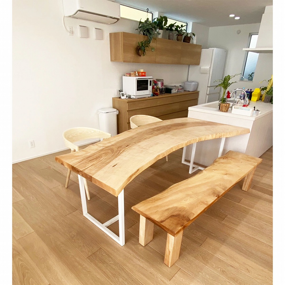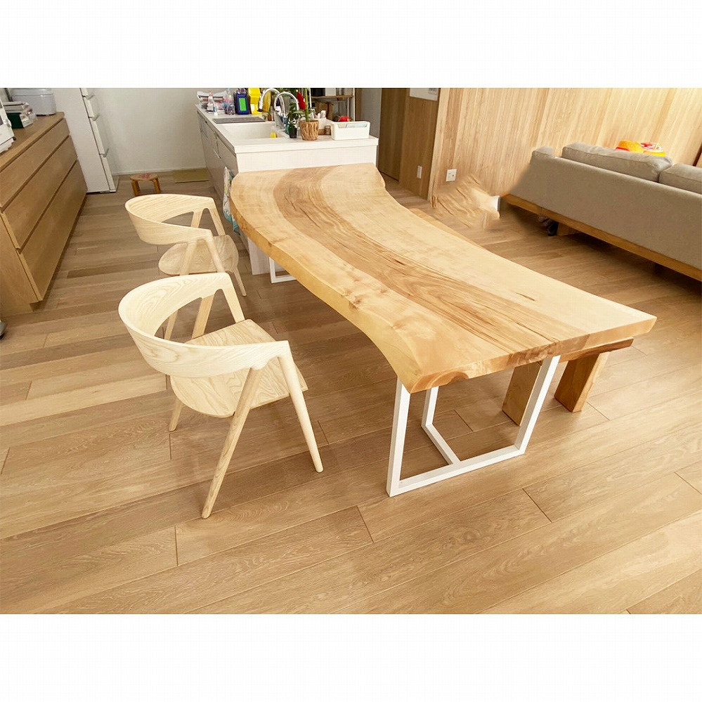 ご新居のダイニングに合わせてお届けさせていただいた栃(トチ)の一枚板です。