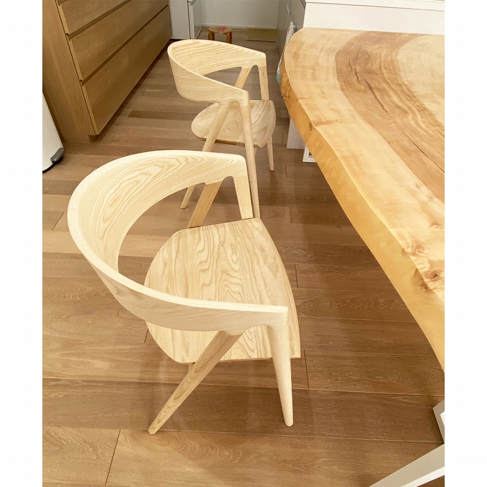 アールがきいたアッシュ材のアームチェアも可愛いです。