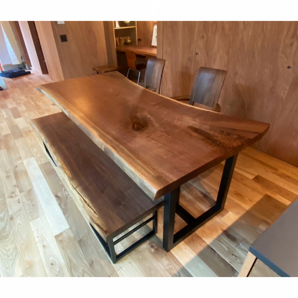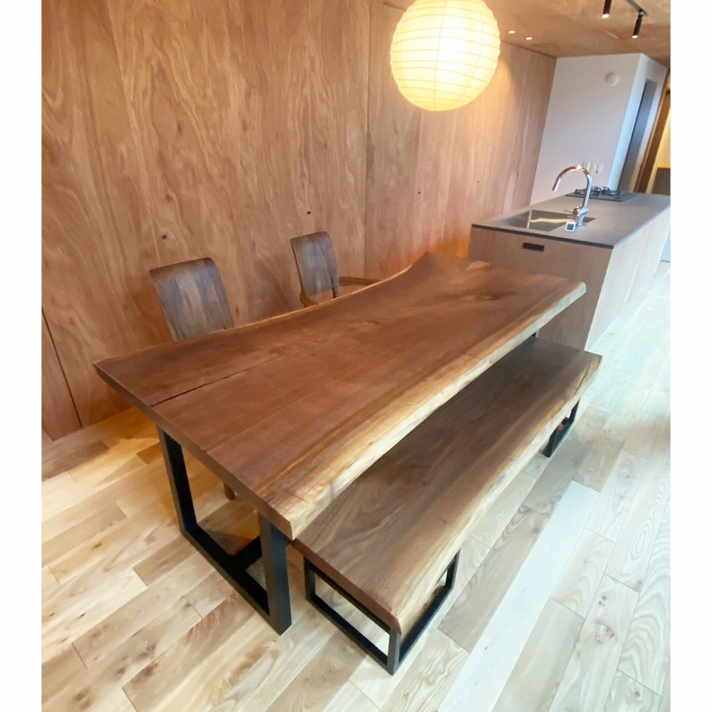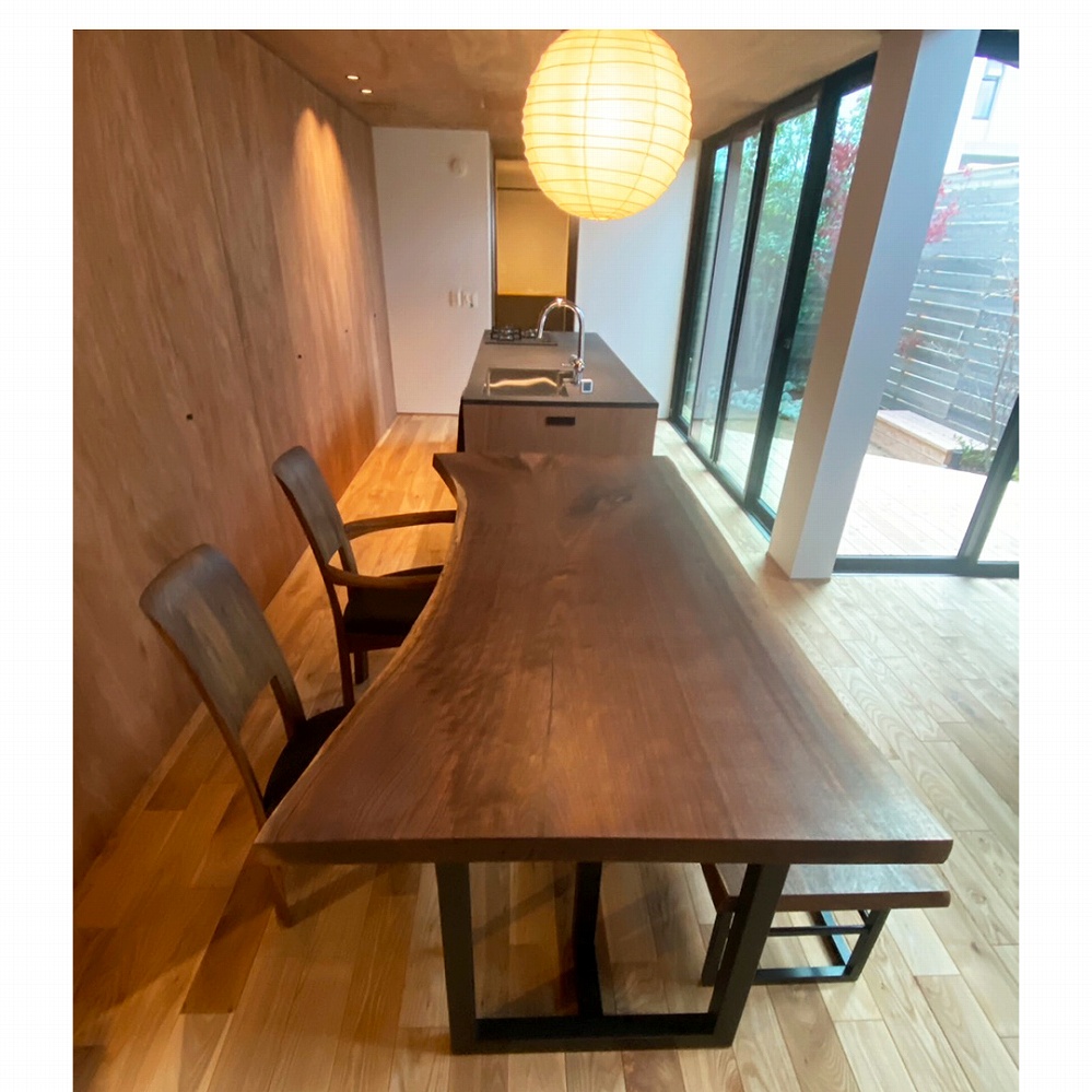 ベンチの一枚板も同じブラックウォールナット材で揃えてより格好良い空間になりました。