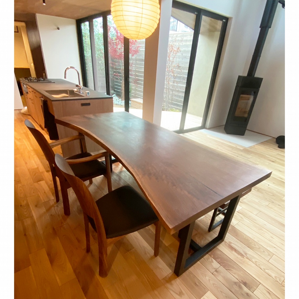 ご新居のキッチンに並べてブラックウォールナット材の一枚板をお届けさせていただきました。