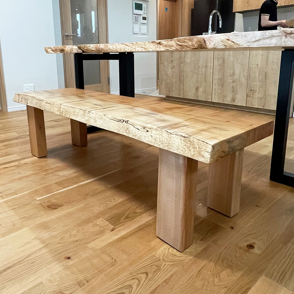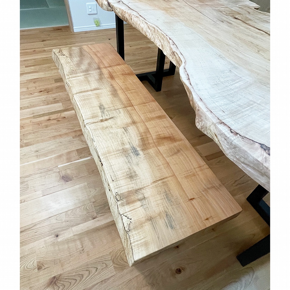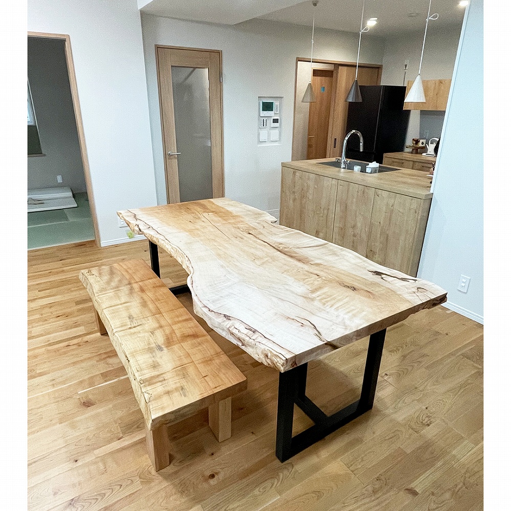 カエデの一枚板とベンチ、お部屋の優しい雰囲気にとってもマッチしていて素敵です!