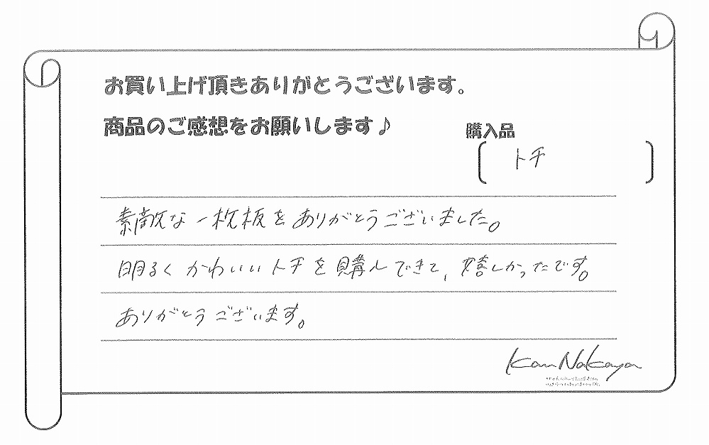 明るくかわいいトチを購入できて、嬉しかったです。