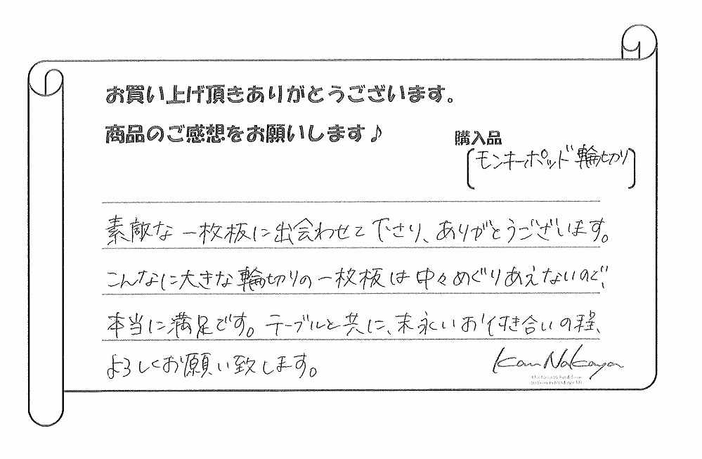 『素敵な一枚板に出会わせて下さり、ありがとうございます。
