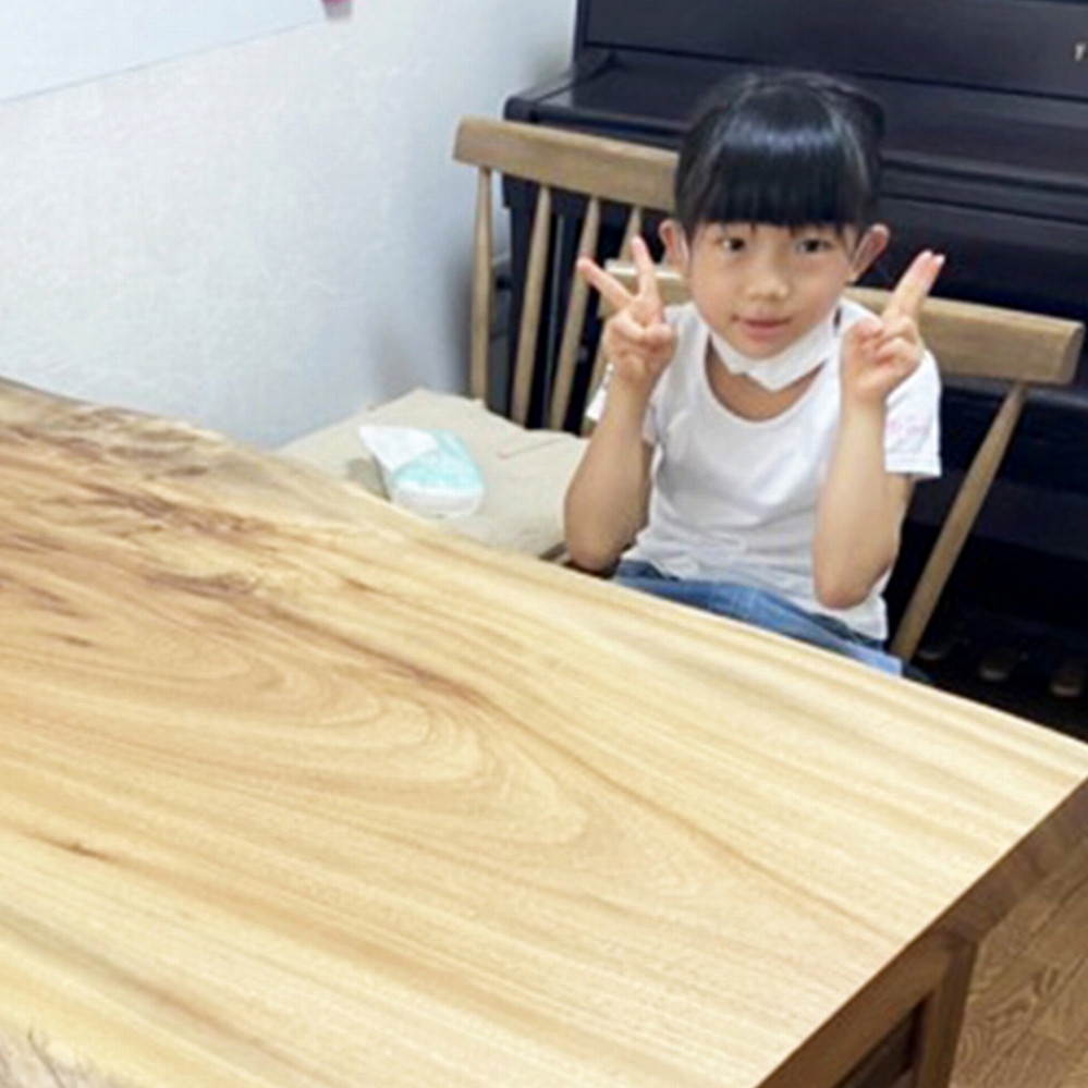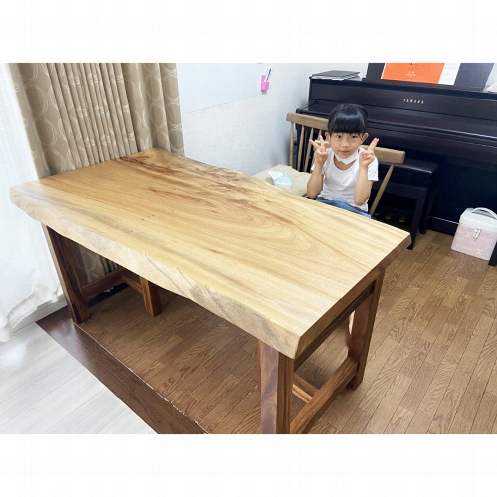 ころんとした可愛い表情の楠(クス)の一枚板をお届けしました。小ぶりな天板ですが、とても味のある一枚です。流れるような杢に美しいコブ杢。飽きの来ない一品です。モンキーポッド材の脚を合わせて落ち着いた雰囲気です。楠の良い香りが漂います。