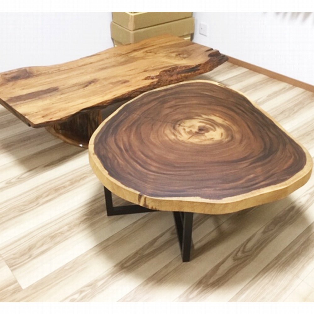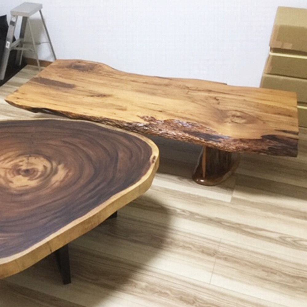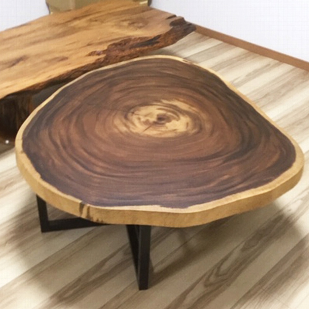 明るい色あいのフローリングにモンキーポッド材の輪切りの一枚板をお届けさせていただきました。