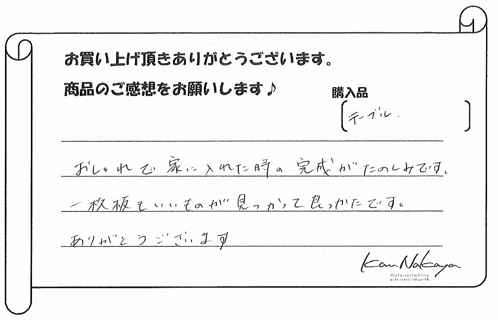 一枚板もいいものが見つかって良かったです。