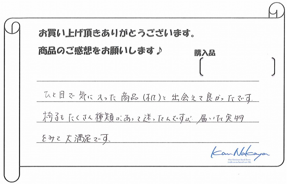 椅子もたくさん種類があって迷ったんですが届いた実物を見て大満足です。』