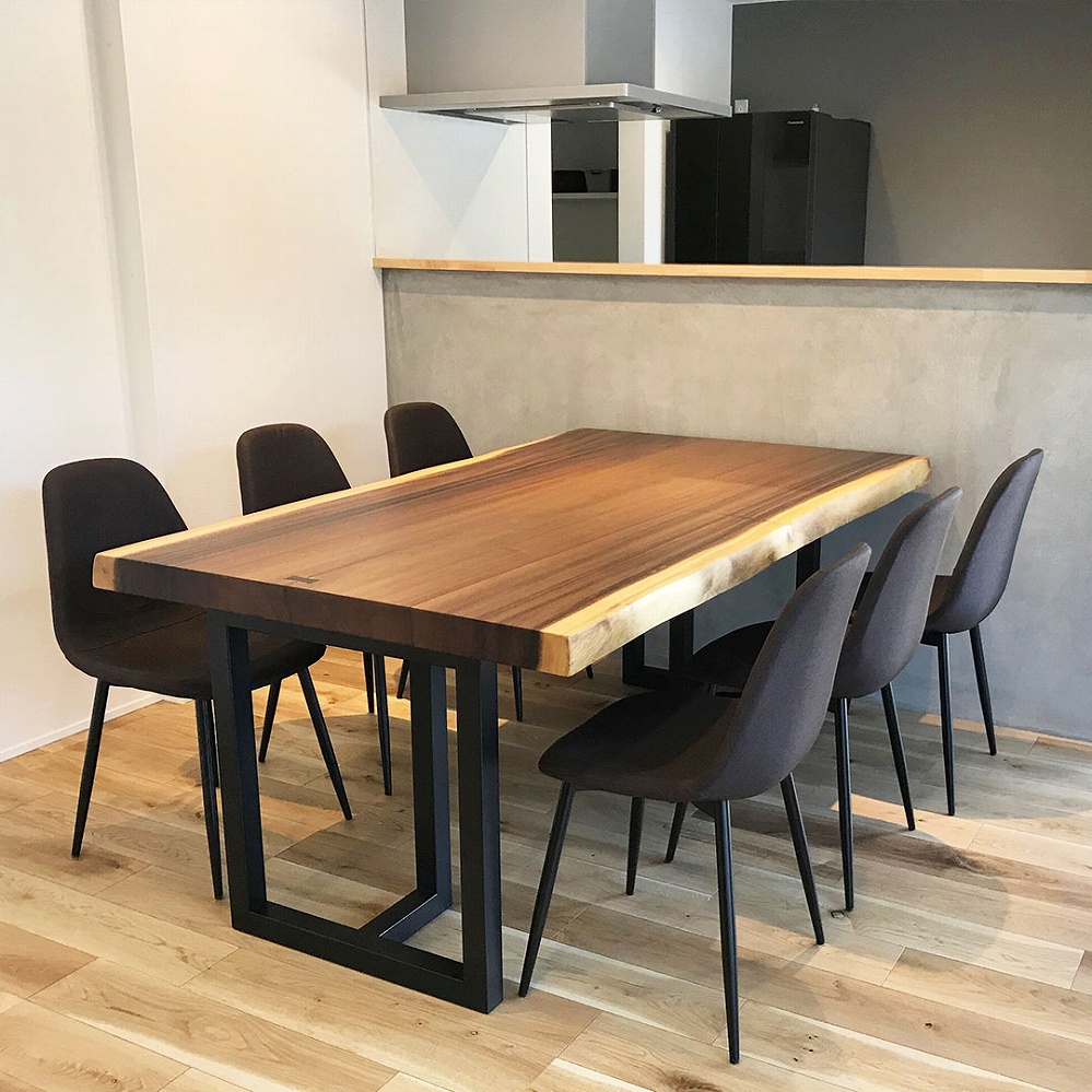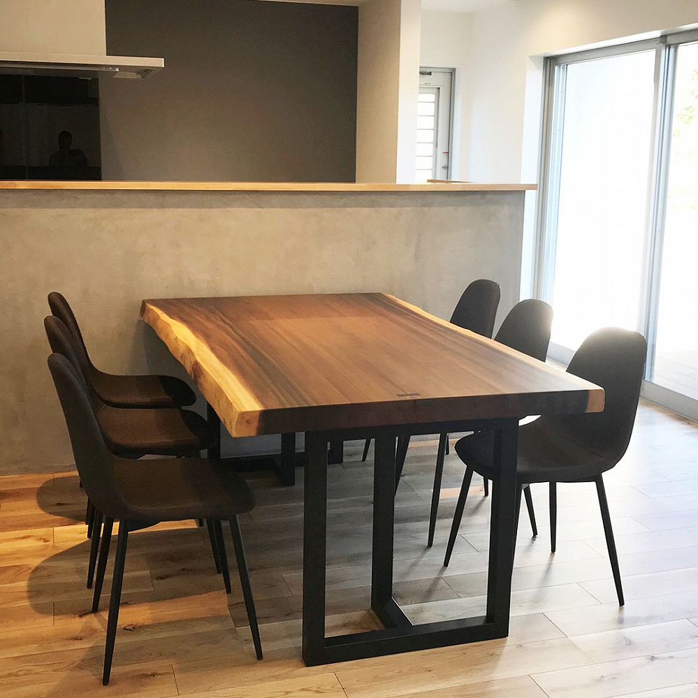 黒い角脚のアイアン脚とモダンチェアともとても良く合っています。
