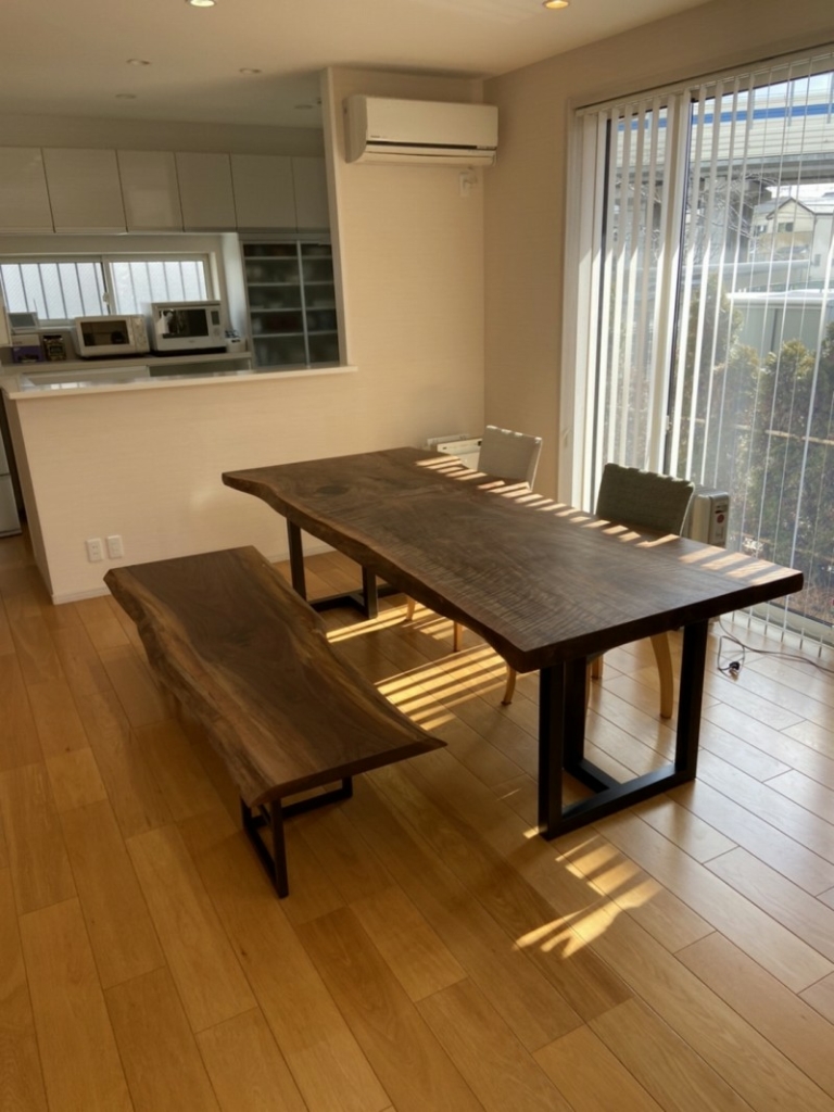 更にブラックウォールナット一枚板のベンチをお持ちしました