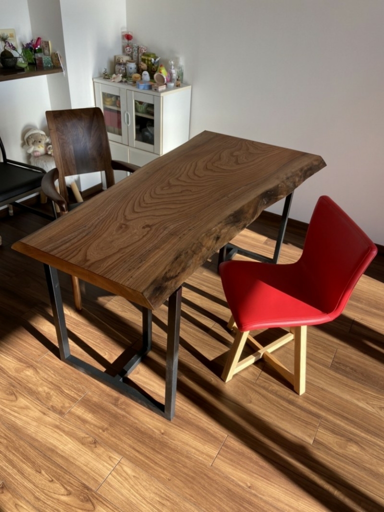 2. ケヤキの一枚板とウォールナットのダイニングチェアをお届け