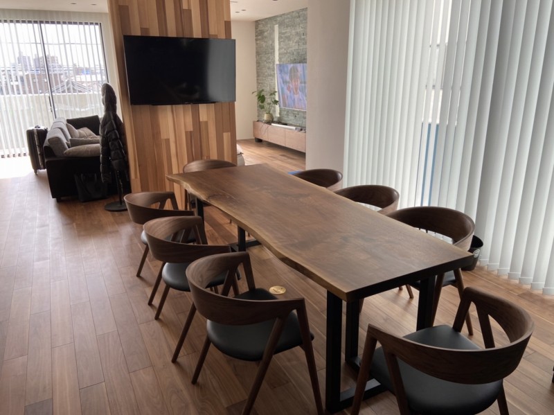 当社の一枚板とダイニングチェアも凄く映えますね