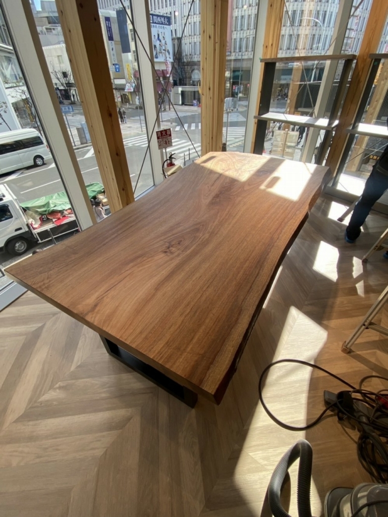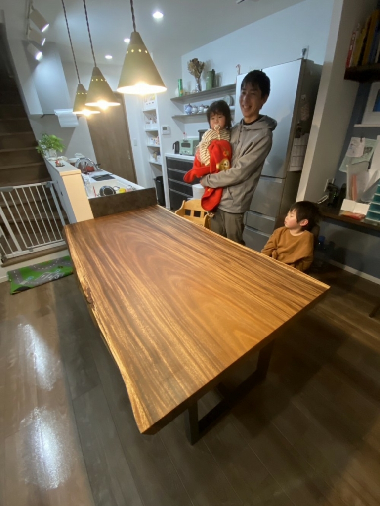 この楠は大きく2100長、奥行きも1100以上あるので脚も別注で大きく作成させて頂きました^ ^