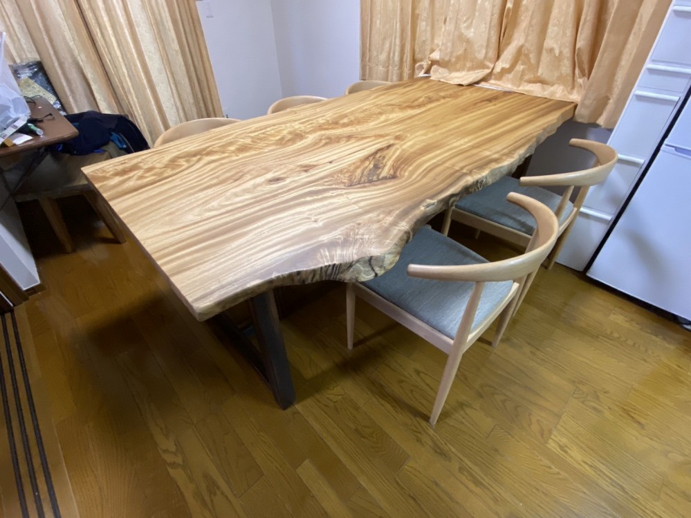 アイアン脚、エノキの色合いがリビングに合わせて綺麗に仕上がりました^ ^