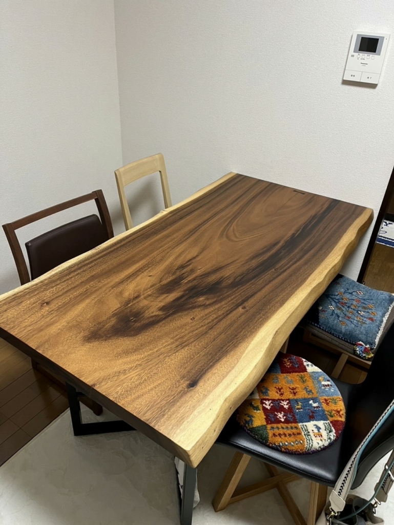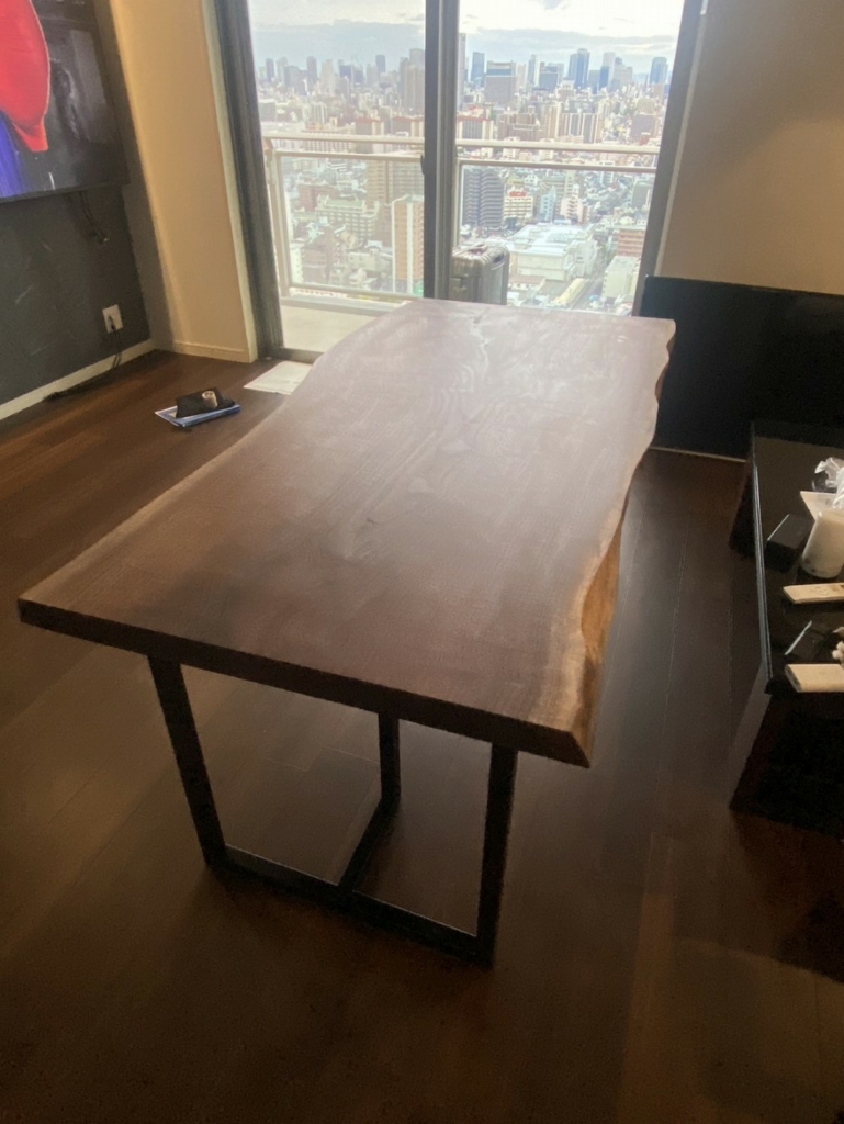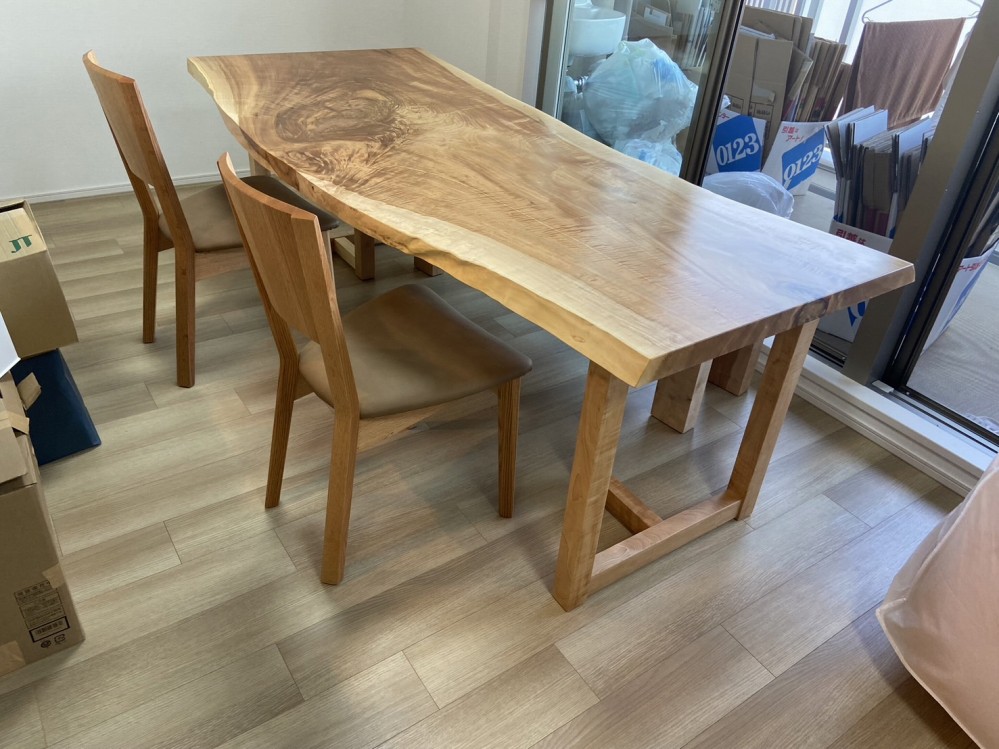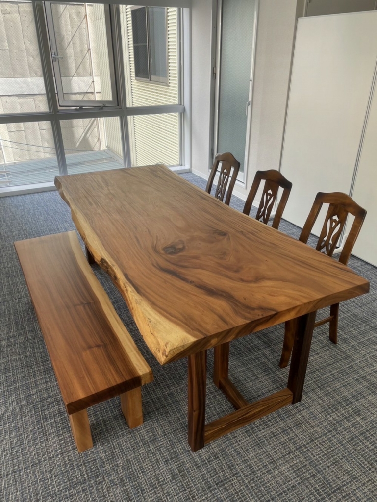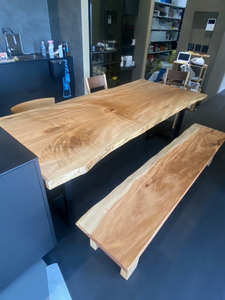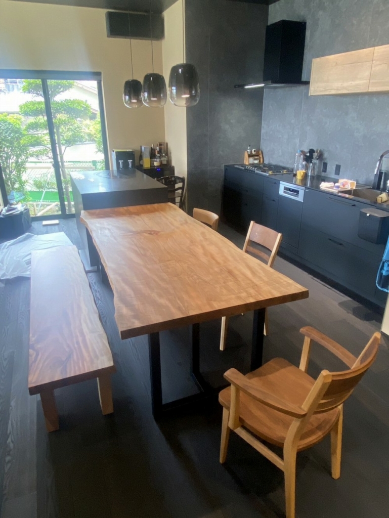 2100幅のダイニングテーブルと1500ベンチをモンキーポット一枚板で配送させて頂きました^ ^