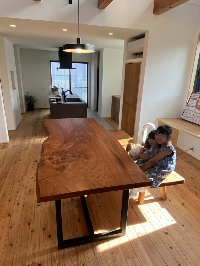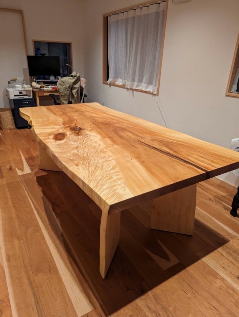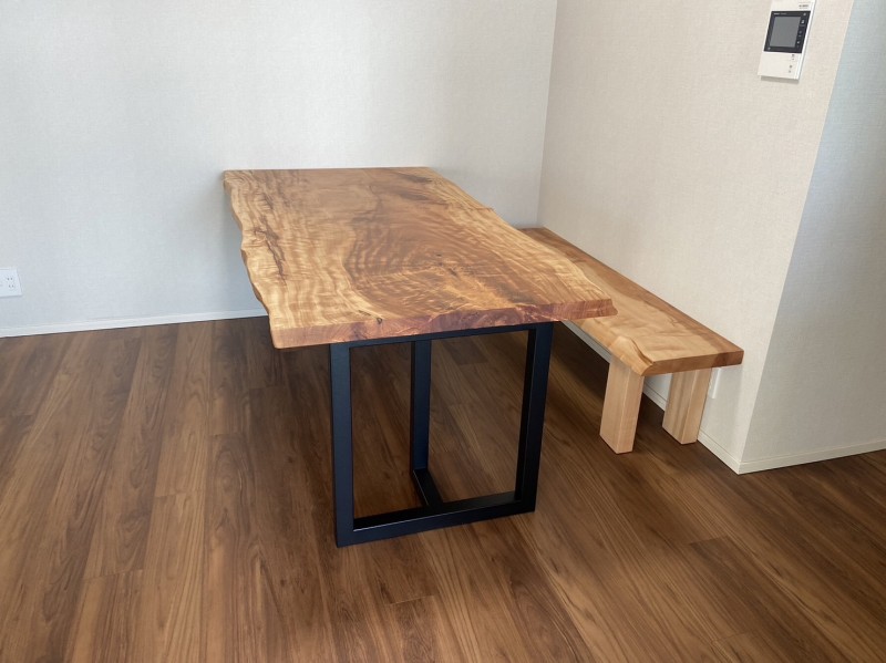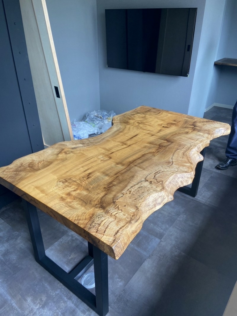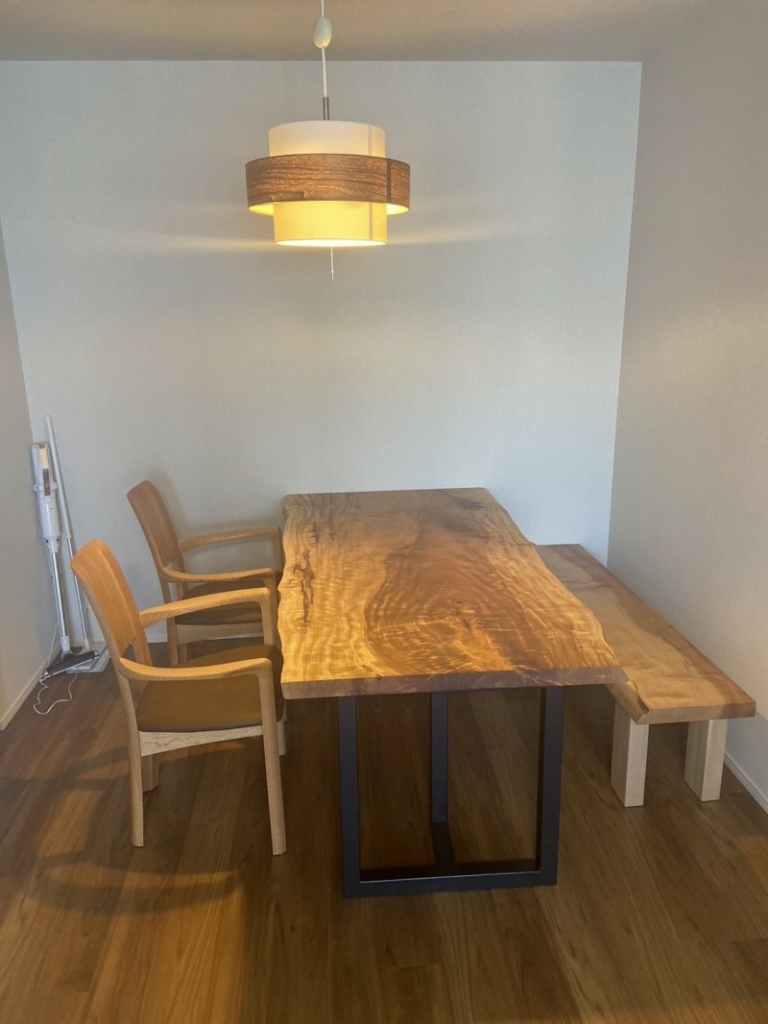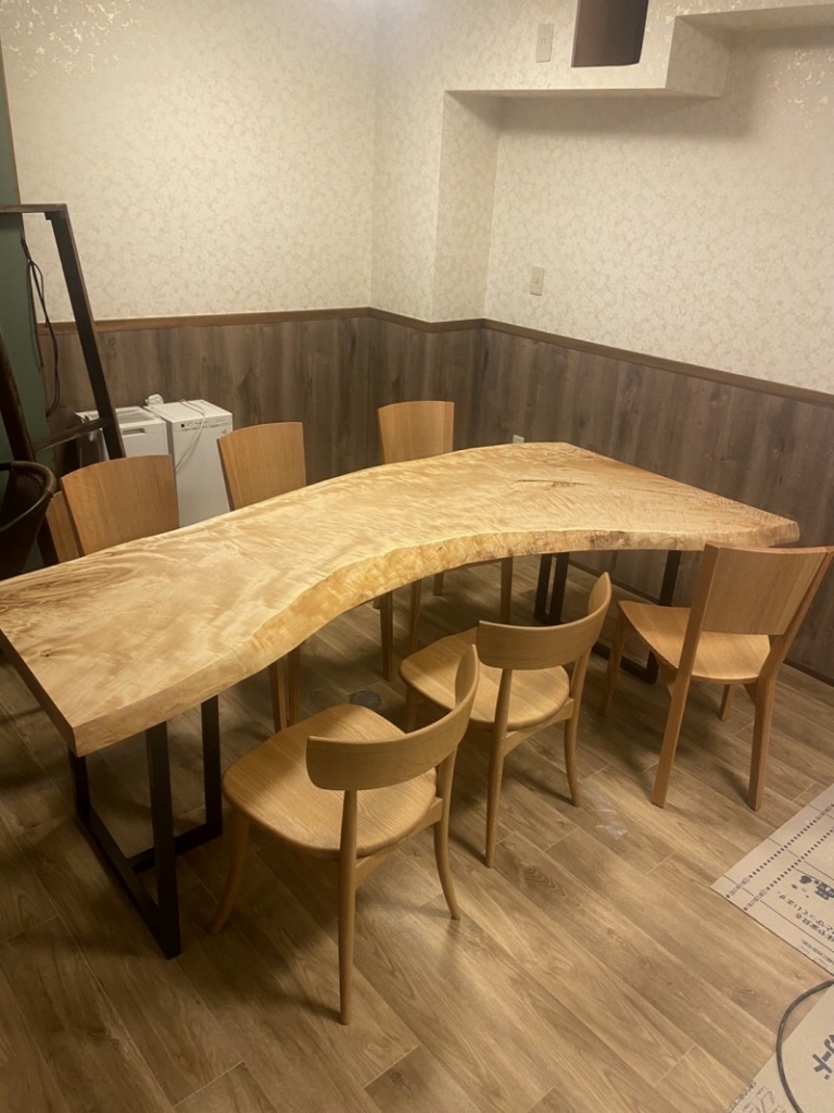 味のある変形の木目も美しい栃の一枚板と座り心地ご良いとナラ材の椅子をご購入頂きました^ ^