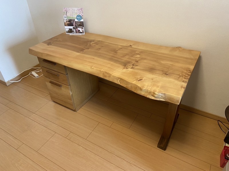 大阪市内のタワーマンションに栃一枚板のデスクをお届けしました^ ^