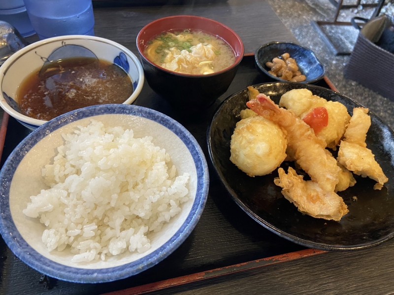 お昼は帰り道に難波の大吉で天ぷら定食^ ^