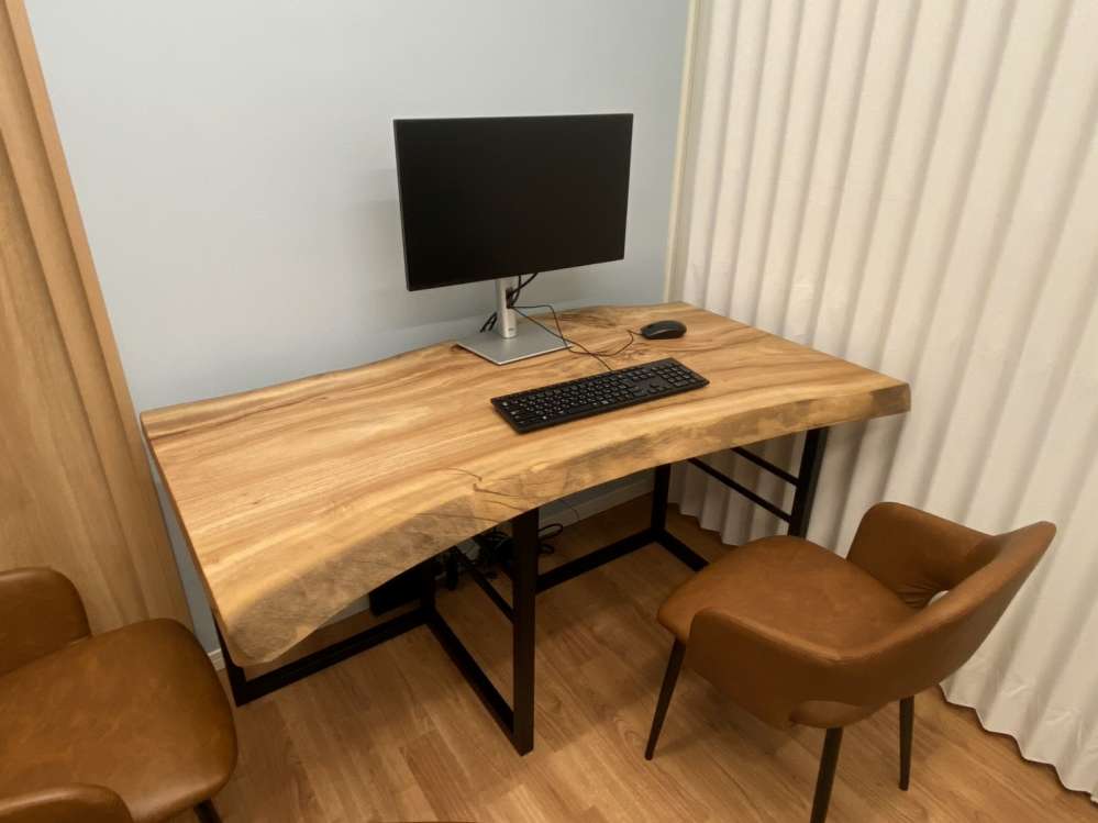 年始早々にオープンされる茨木市のよしだ子供クリニック様に追加の楠一枚板デスクをお届けしました^ ^