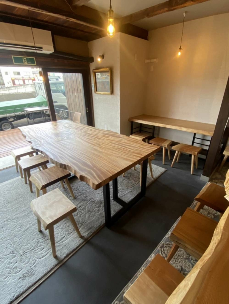 一枚板のテーブル2枚とカウンター、椅子を22脚お届けしました^ ^