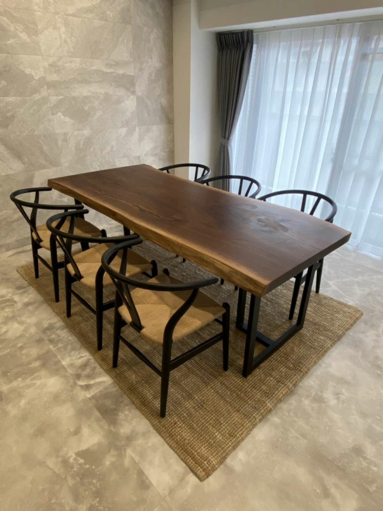 栃一枚板のテーブルですがウォールナットの椅子もよく合いますね♪