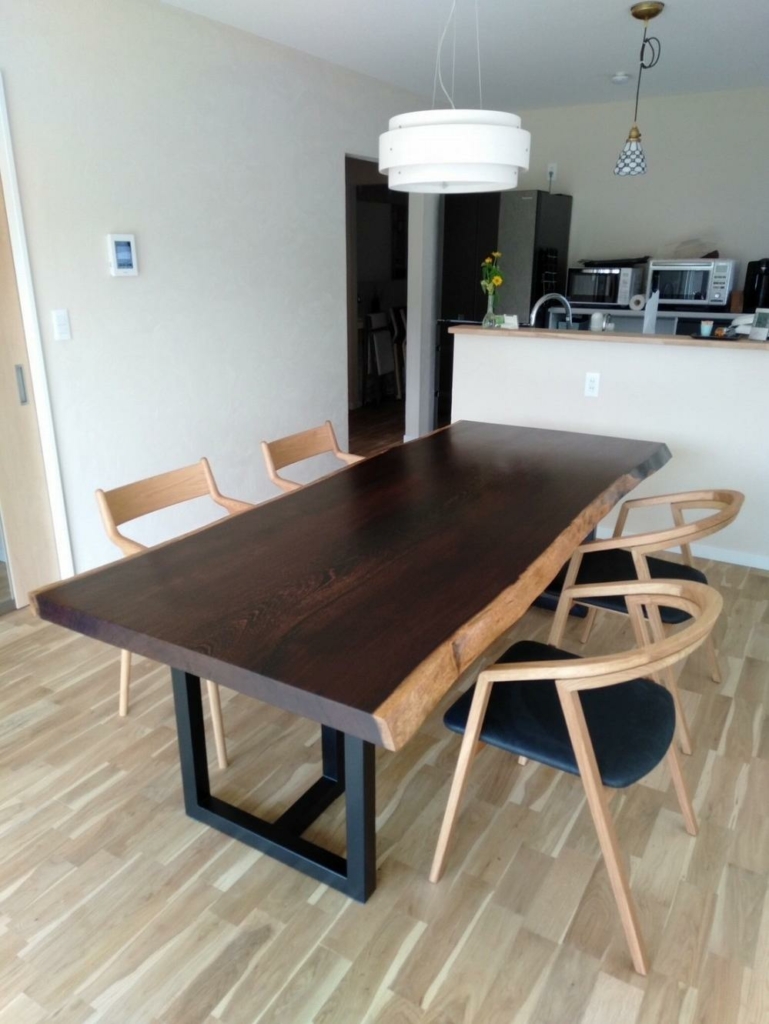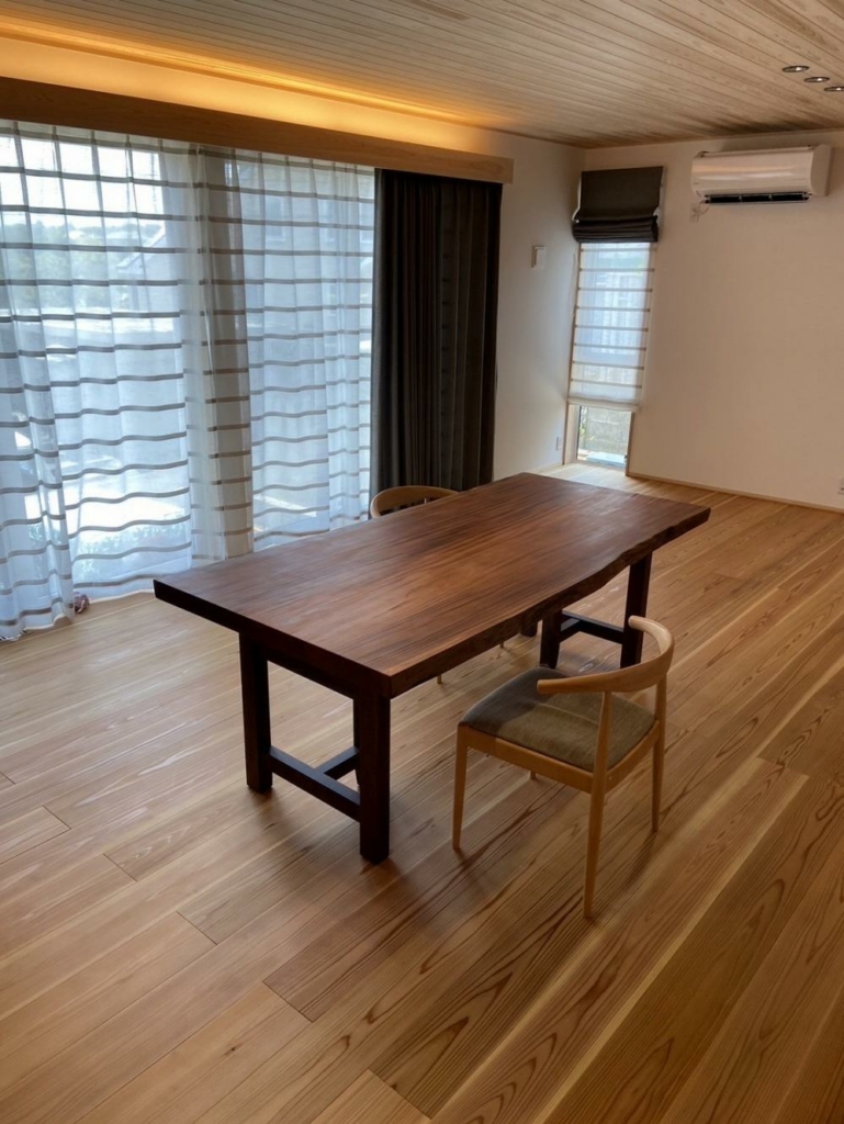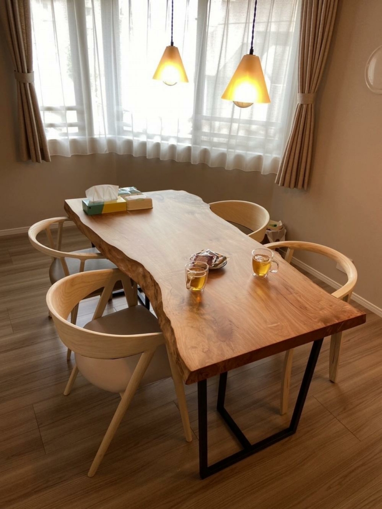 こちらのお客様は先日、楓の一枚板テーブル、ホワイトアッシュのダイニングチェアを2種類