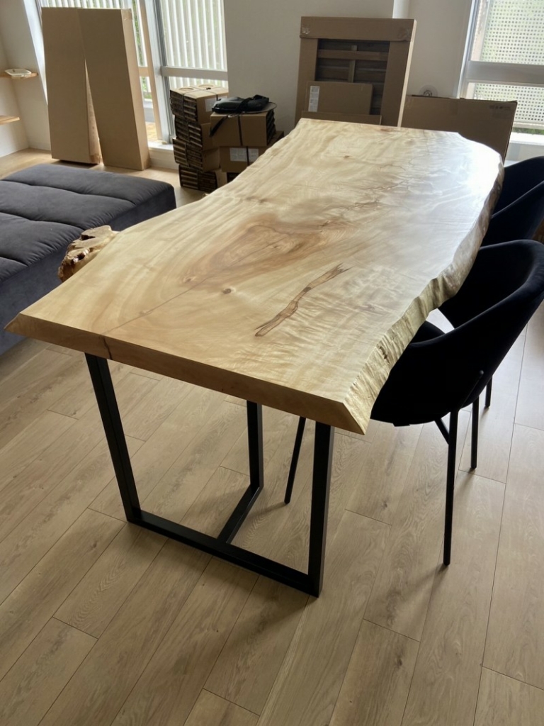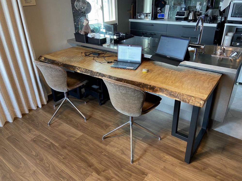 メープルの一枚板とウォールナットの別注脚