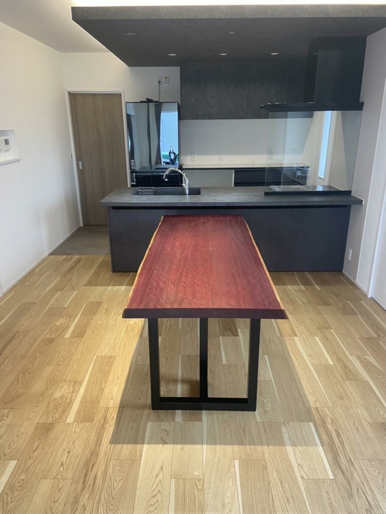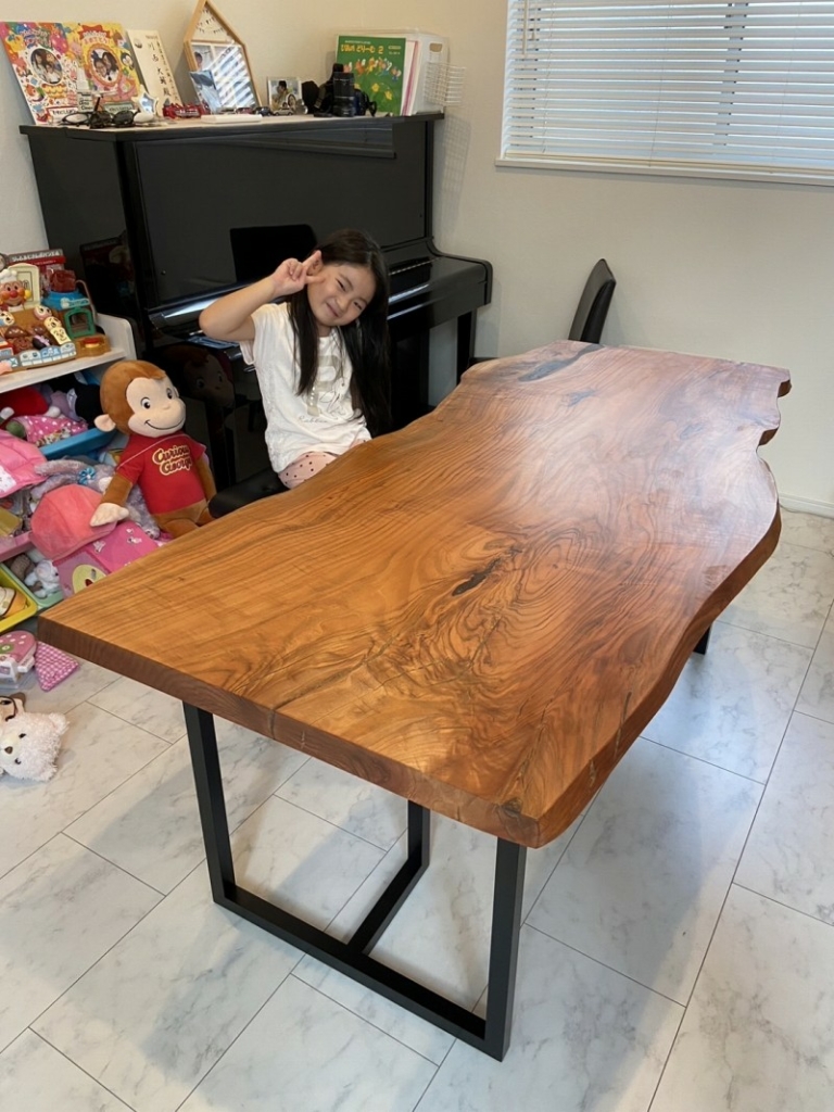 新婚のお客様でご両親が一枚板を当店で買って頂いており、