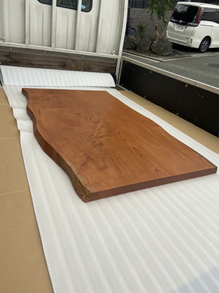 大阪市淀川区のご新婚のお客様宅へケヤキの一枚板をお届けしました^ ^