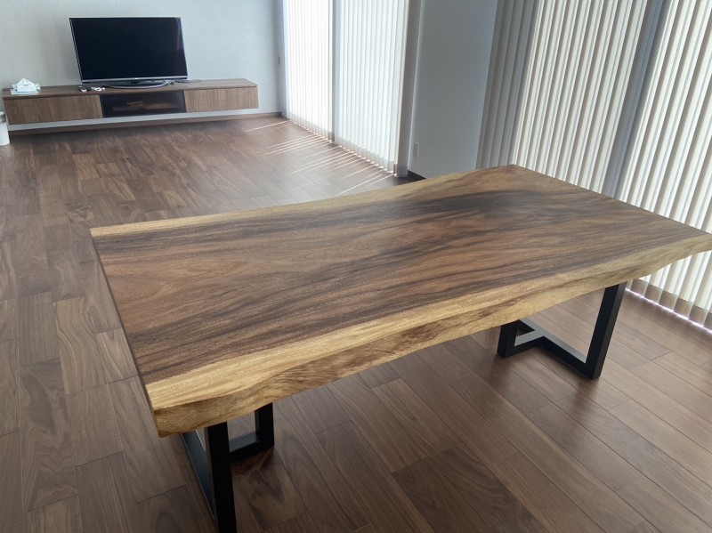 2mのマホガニー一枚板、ウォールナットの脚