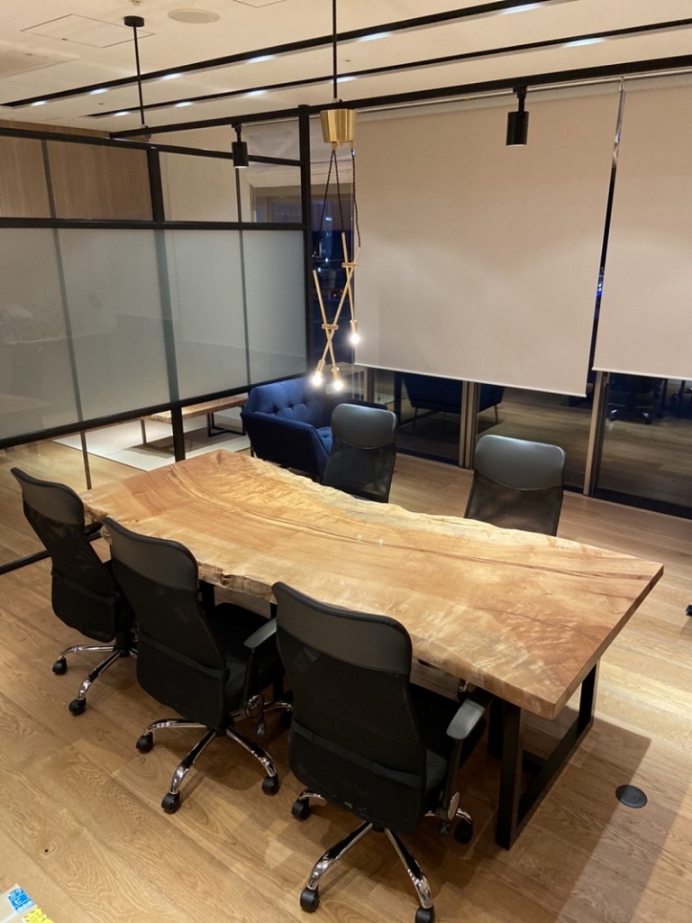2Fオフィスにも変形ですが凄く綺麗な木目の栃の一枚板を