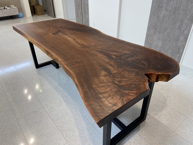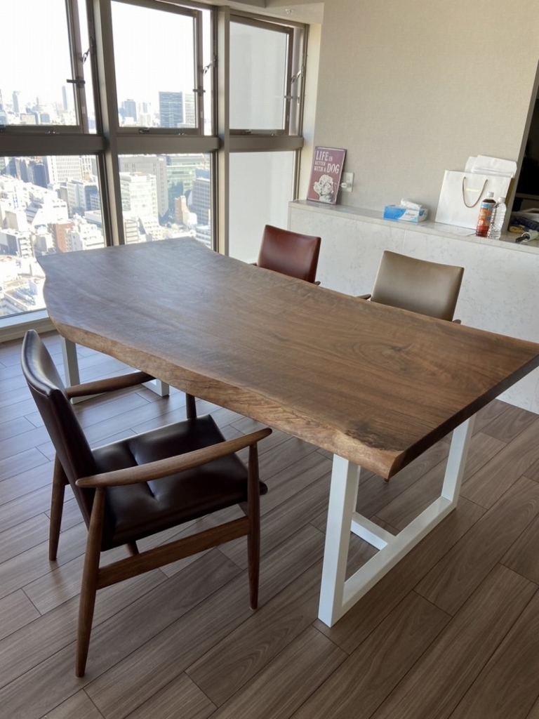 アメリカンブラックウォールナット一枚板、ホワイトのアイアン脚