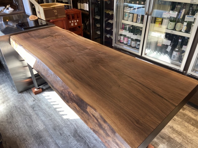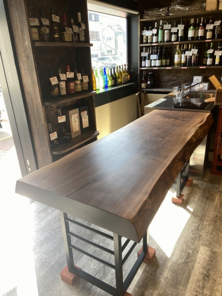 大阪市の玉造駅そばの大蔵酒店さんに10cm厚もあるアメリカンブラックウォールナットの一枚板をお届けしました^ ^