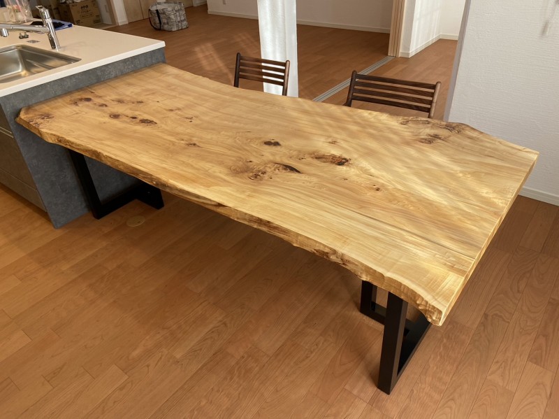 堺市のお客様宅へ栃の一枚板ダイニングテーブルをお届けしました^ ^