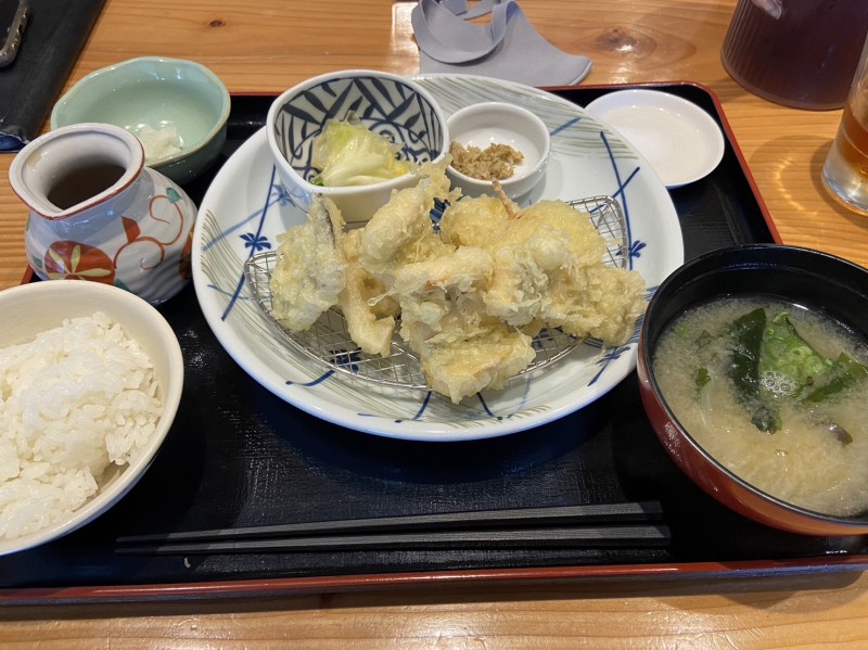 途中で久しぶりに知人のお店の村中で穴子天ぷら定食を頂きました^ ^