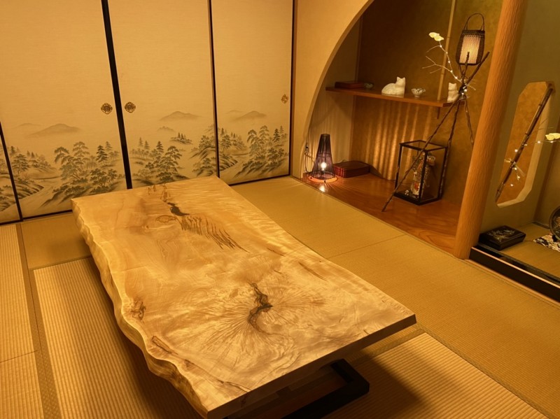 京間の和室ですので2200長の栃が大きく感じないですね^ ^