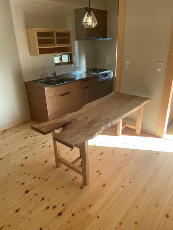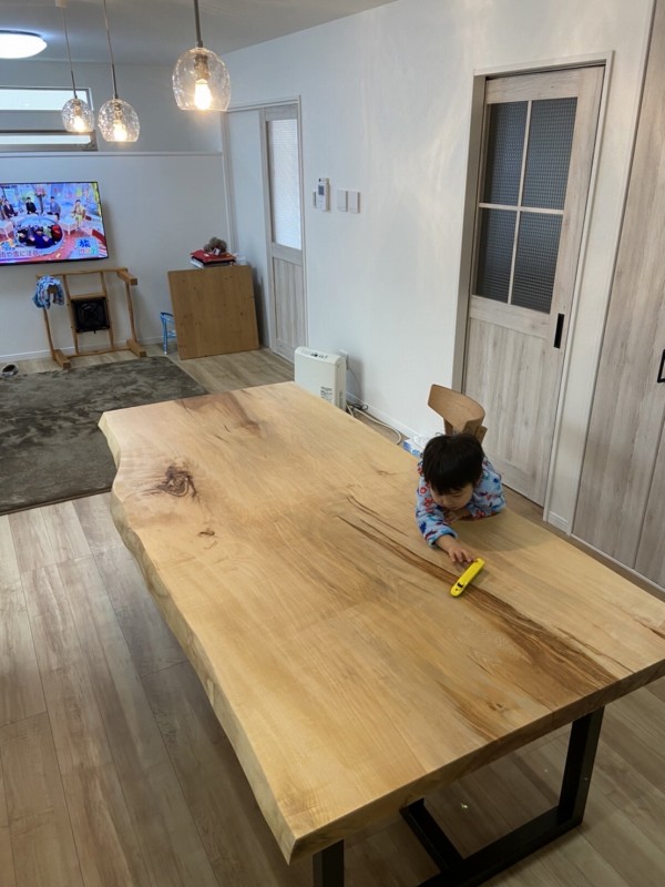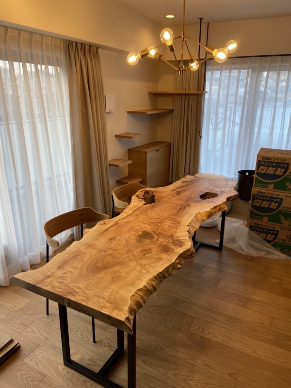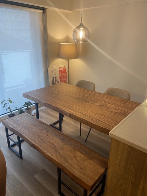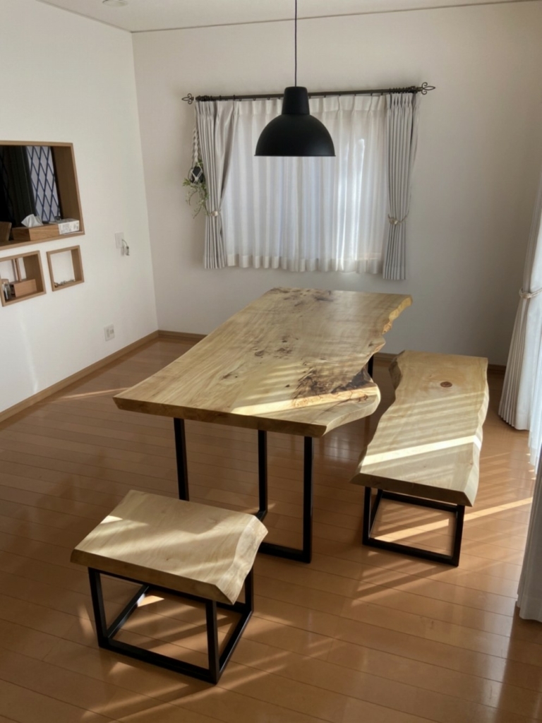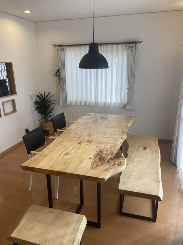 泉佐野市のお客様宅へポプラ一枚板ダイニングテーブルと栃一枚板ベンチをお届けしました^ ^